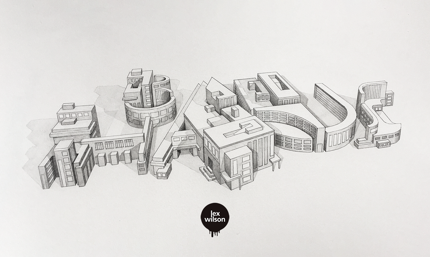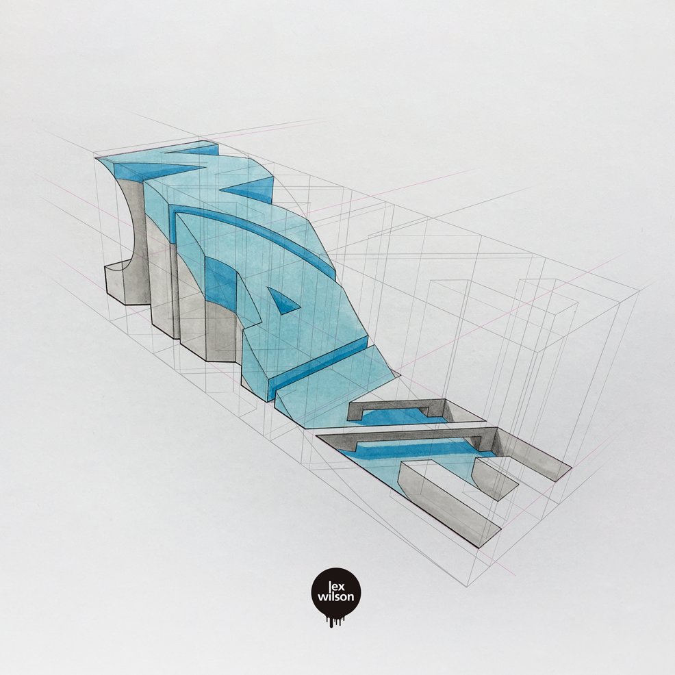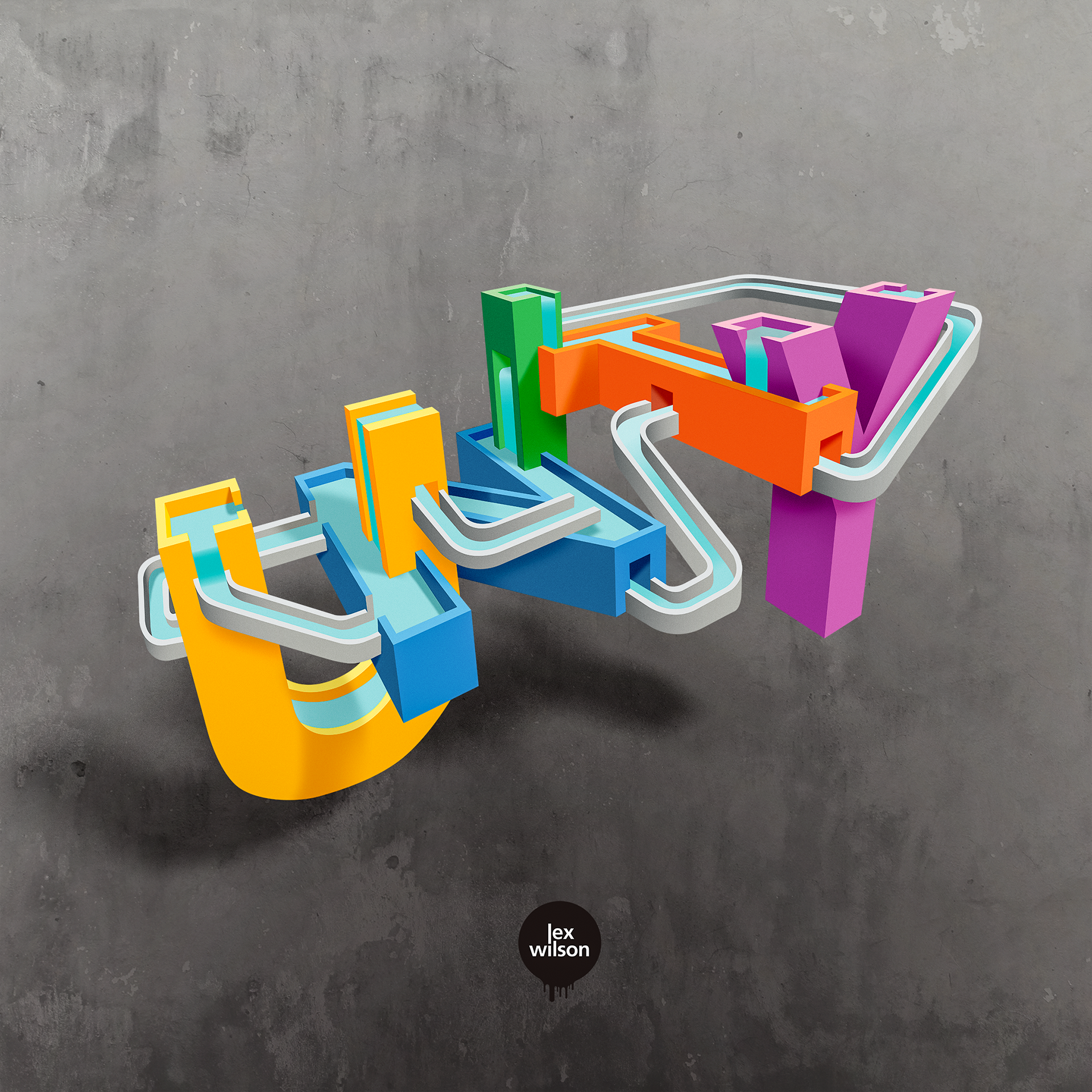 An ongoing series of experiments with type, mainly in 3D and with perspective. [2018]