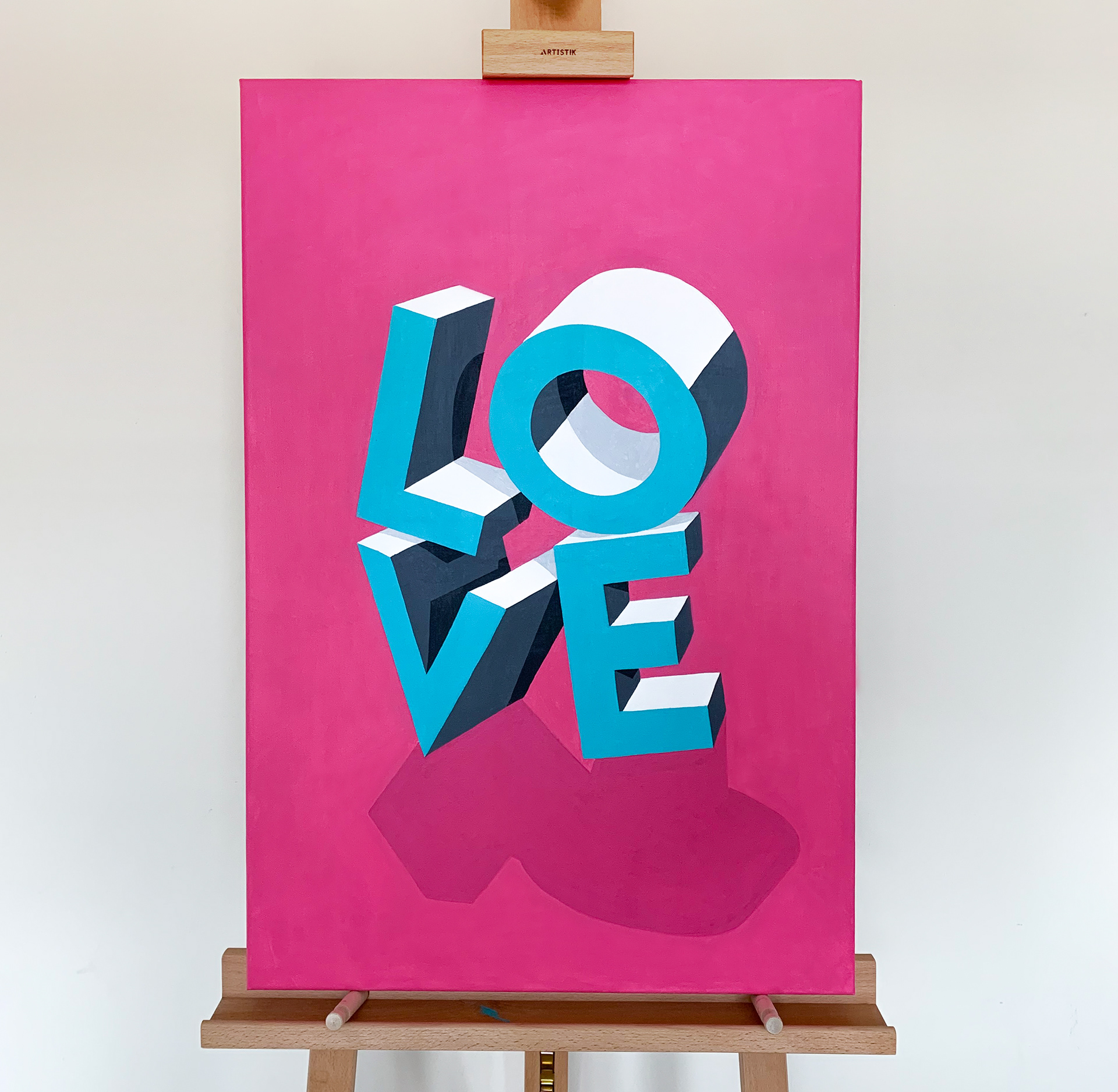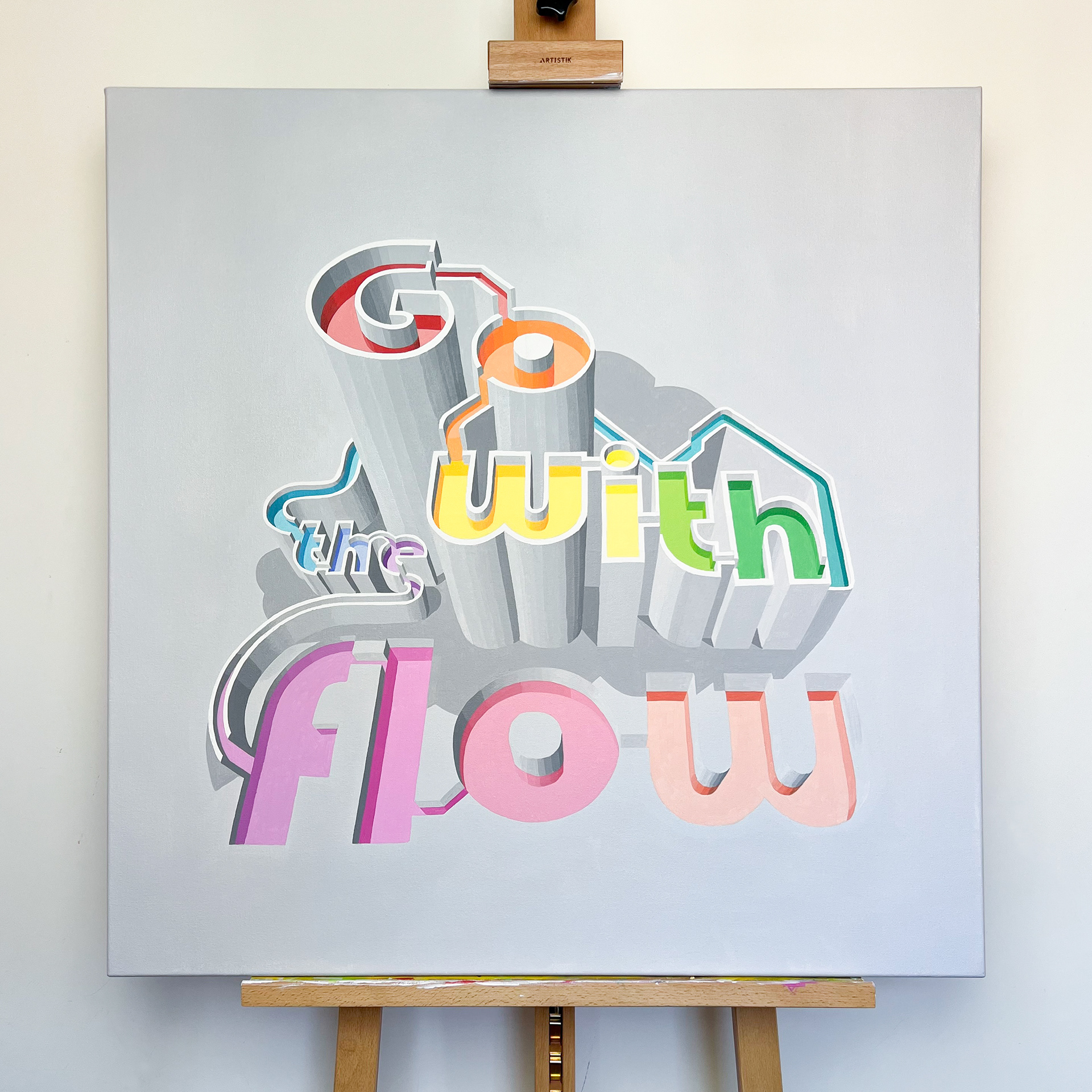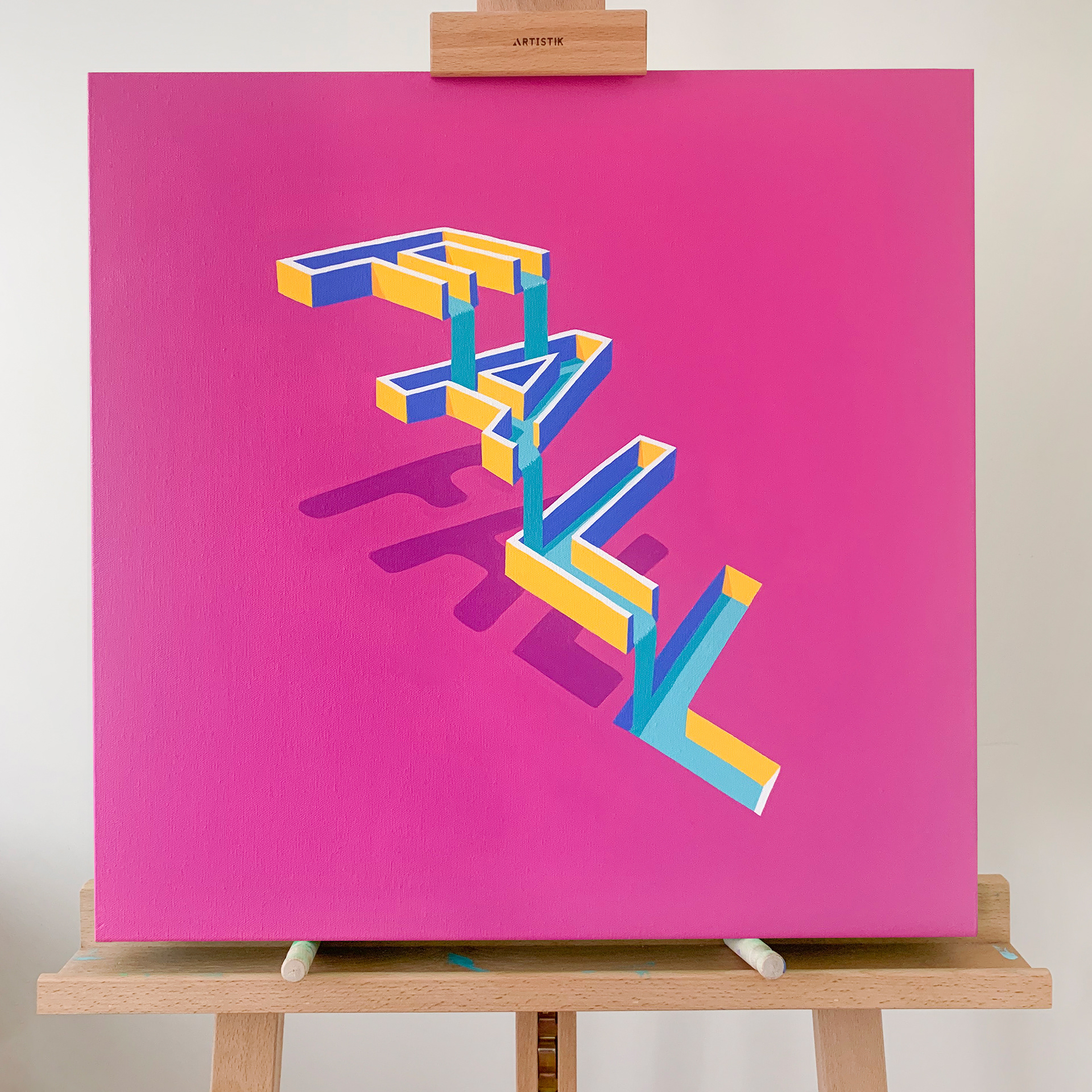 Here are a selection of my 3D typography paintings. I use high-flow acrylic on stretched canvas.