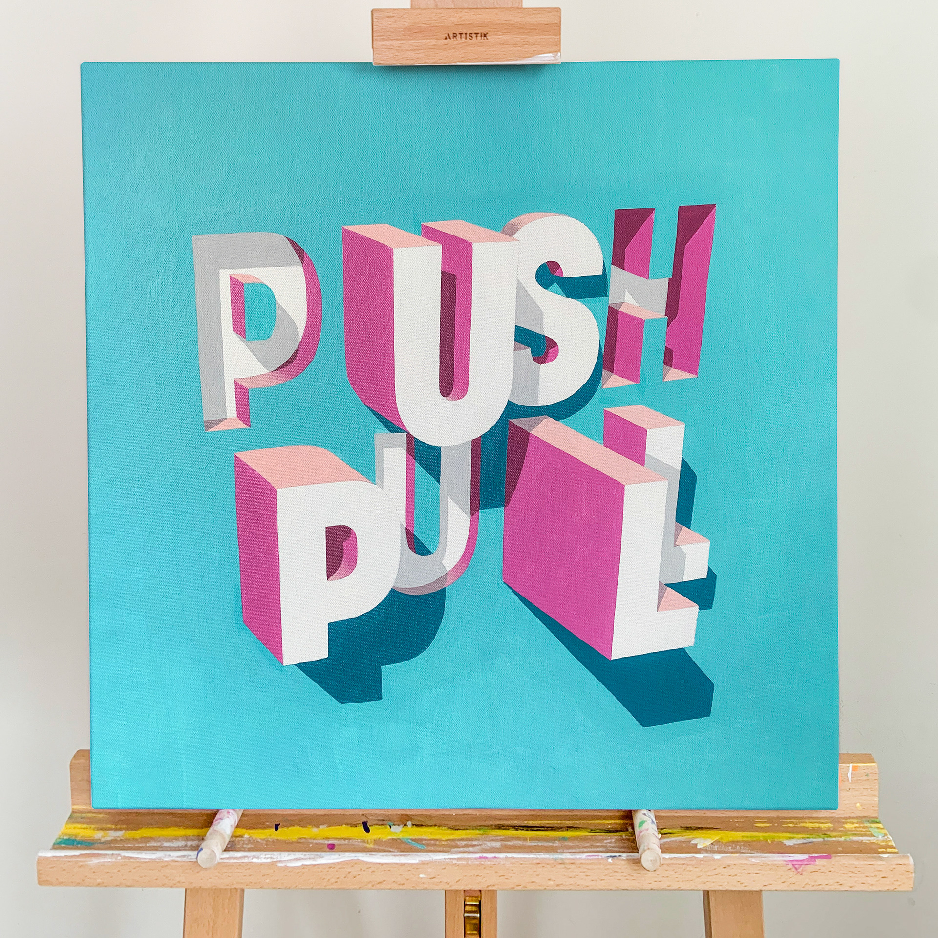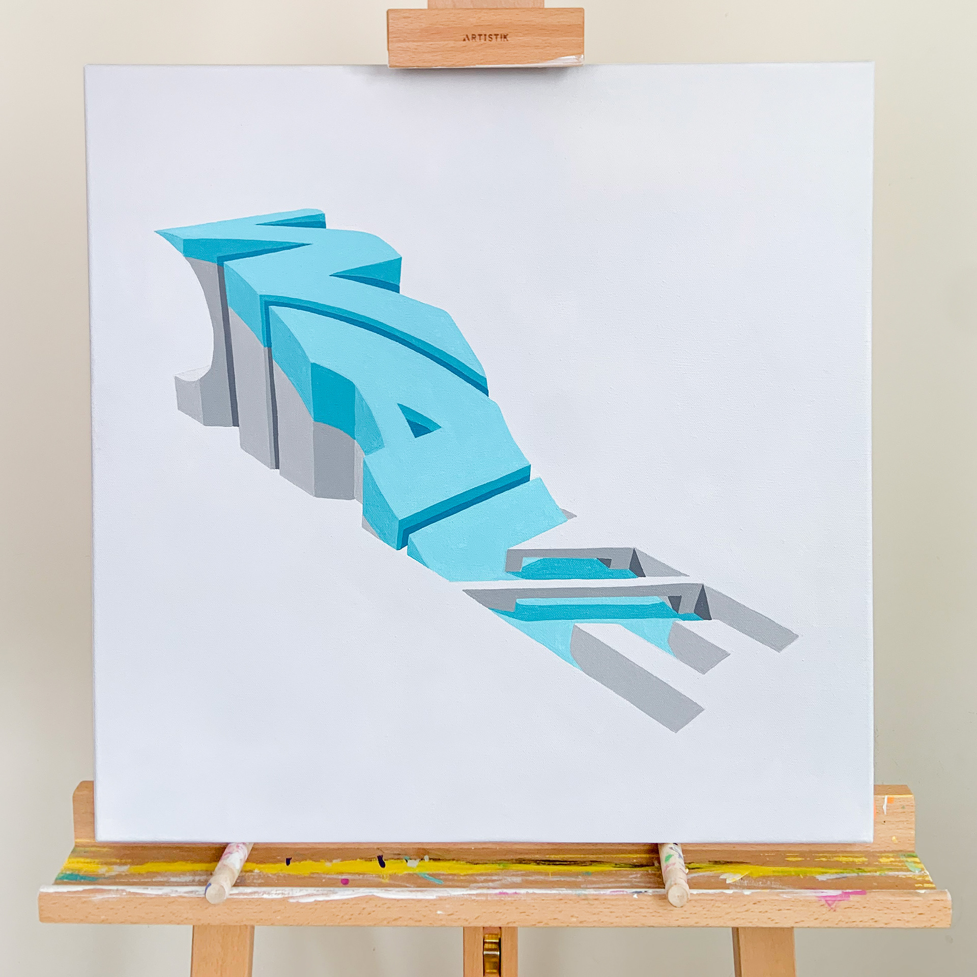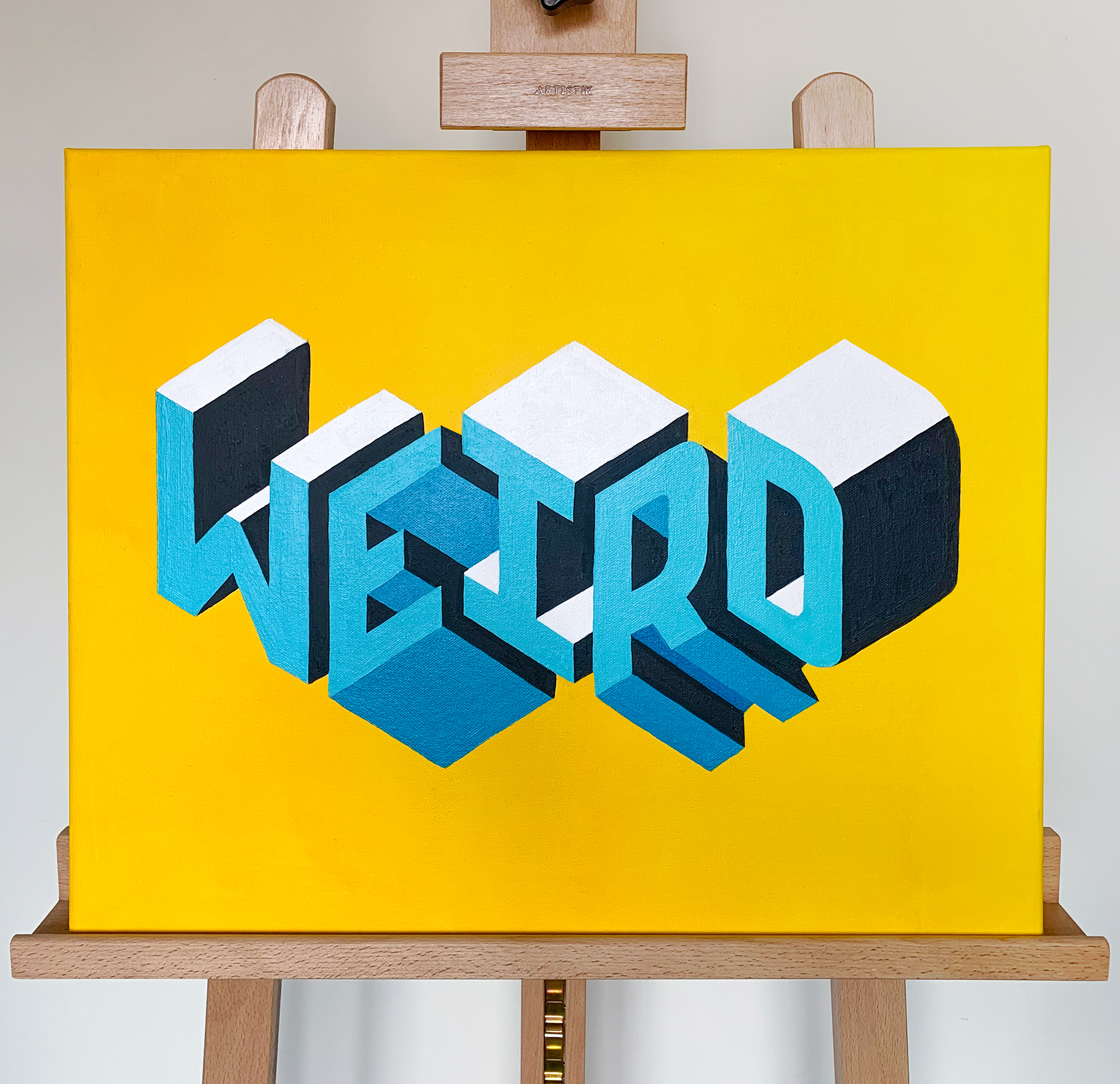Here are a selection of my 3D typography paintings. I use high-flow acrylic on stretched canvas.